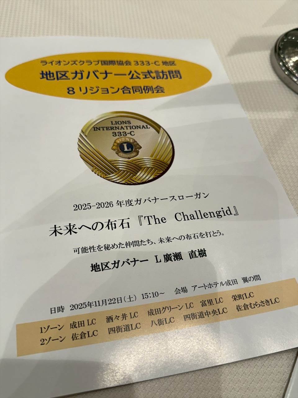 8R地区ガバナー公式訪問2025年11月22日(土)アートホテル成田にて、8R地区ガバナー公式訪問が行われました。【写真:地区情報テクノロジー委員(8R)L秋葉 慎吾】 [Show thumbnails] About The Authorライオンズクラブ国際協会地区情報マーケティング委員会333c地区情報マーケティング委員会情報の共有化を目指します。ライオンズクラブ国際協会333-C地区Recent Posted2025年11月18日2025-2026年度ニュース20251116 12R地区地区ガバナー公式訪問2025年11月14日2025-2026年度ニュース20251109 9R地区ガバナー公式訪問2025年11月2日2025-2026年度ニュース20251101 Staet up! リーダー交流会2025年10月29日2025-2026年度ニュース第62回OSEALフォーラム2025札幌 報告2025年10月22日2025-2026年度ニュース20251019 第27回薬物乱用防止教育認定講師養成講座333cの記事一覧